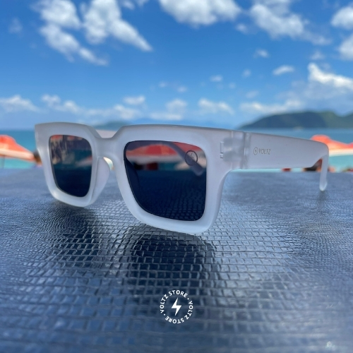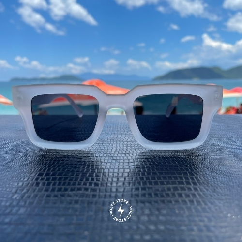 Material: Acetato Cor da armação: Branco Translúcido Cor da lente: Cinza Proteção: UV400