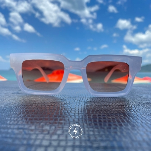 Material: Acetato Cor da armação: Branco Translúcido Cor da lente: Rosê Proteção: UV400