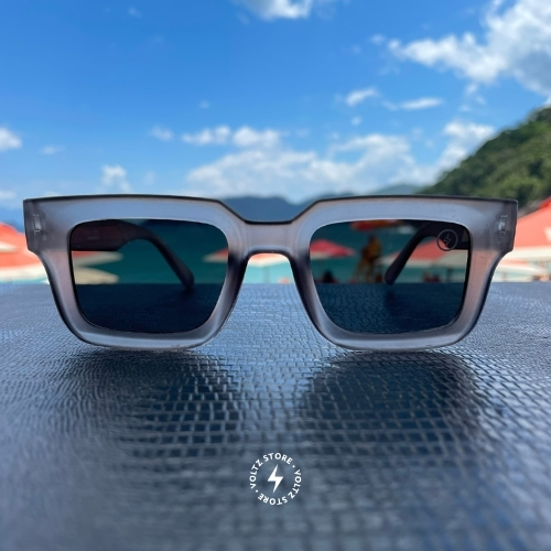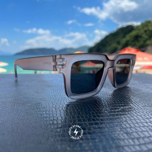 Material: Acetato Cor da armação: Cinza Translúcido Cor da lente: Preta Proteção: UV400
