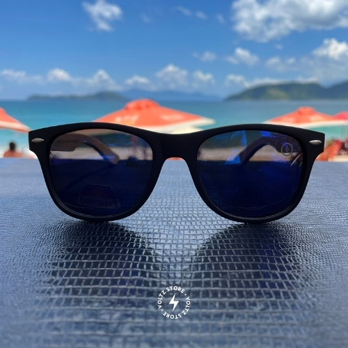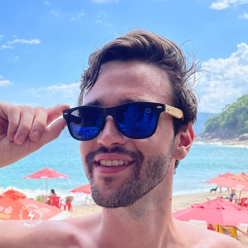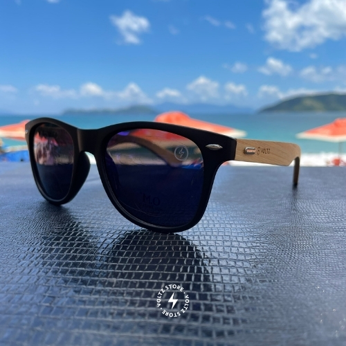 Malibu – Preto / Madeira Natural / Lente Azul Espelhada