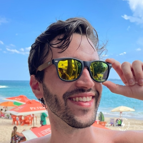 O Malibu é um modelo lifestyle premium com diferencial marcante: hastes em madeira. O design traz um visual sofisticado e natural, ideal para quem valoriza detalhes e quer um óculos com identidade e acabamento diferenciado.