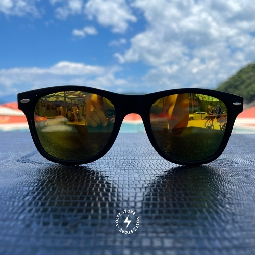 Malibu – Preto / Madeira Natural / Lente Dourada Espelhada