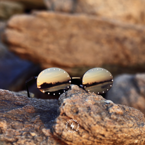 O Milão é um modelo redondo em metal com detalhes de rebites, trazendo uma estética fashion e cheia de personalidade. É perfeito para looks mais ousados e para quem busca um óculos com assinatura visual forte.
